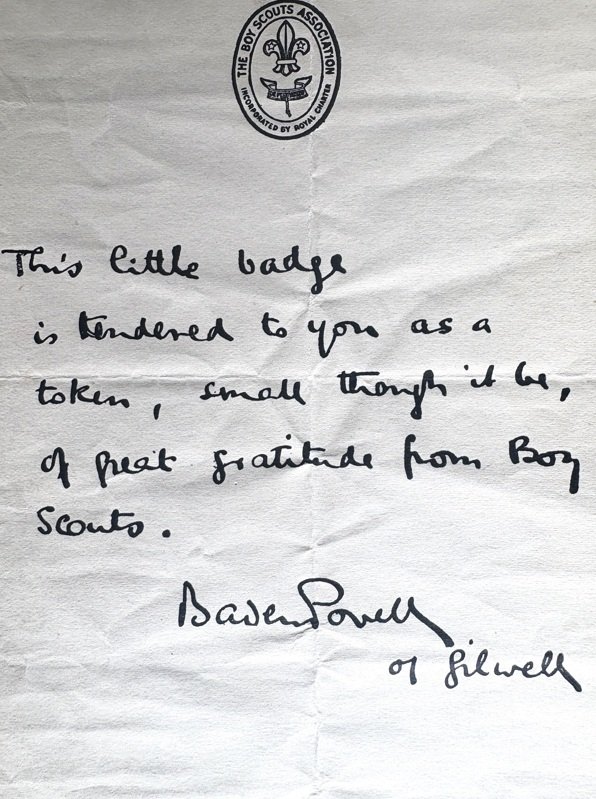Note from Baden Powell found in Mr. Blades’s books.
